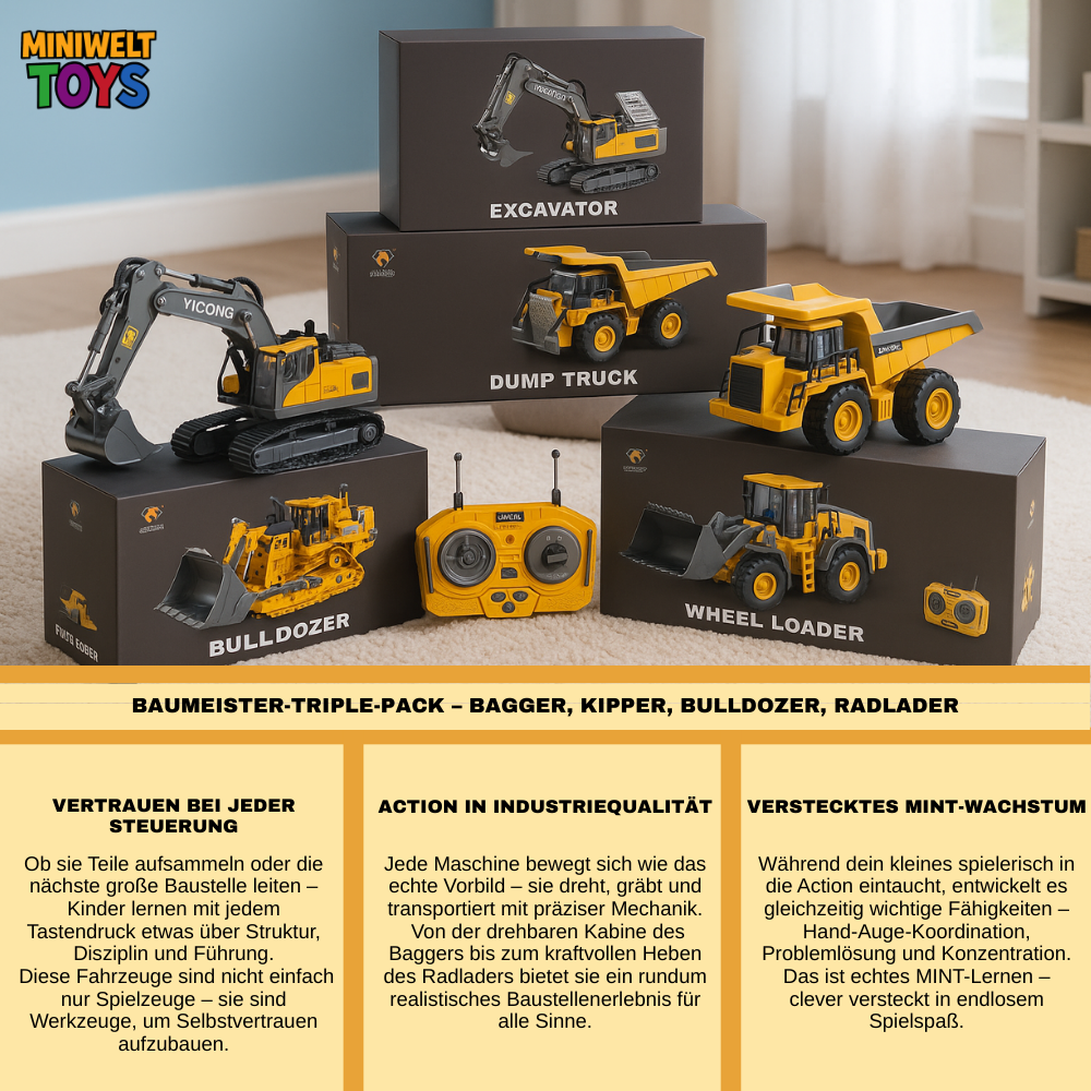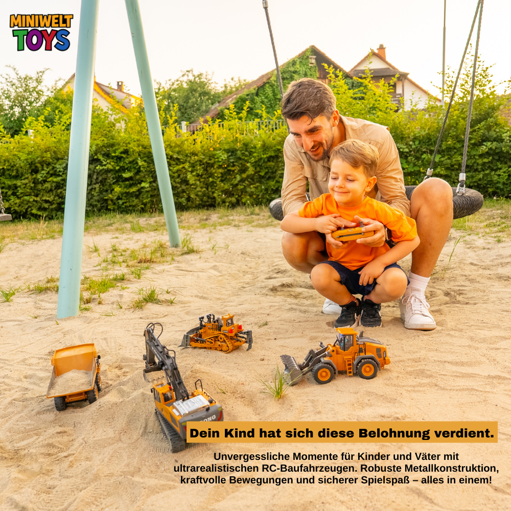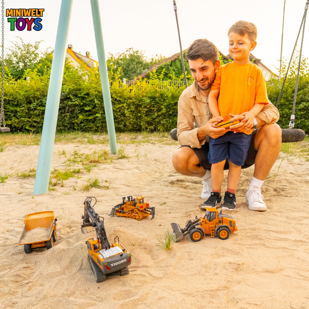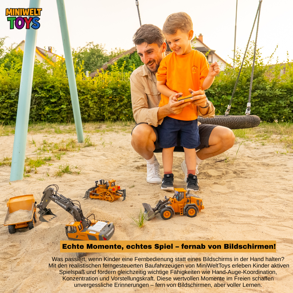 Die ferngesteuerten Trucks und Bagger von MiniWeltToys™ fördern aktives Spielen, verbessern Konzentration und Koordination und bringen Kinder raus an die frische Luft - ganz ohne Bildschirm.
