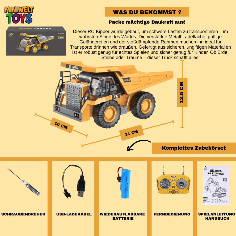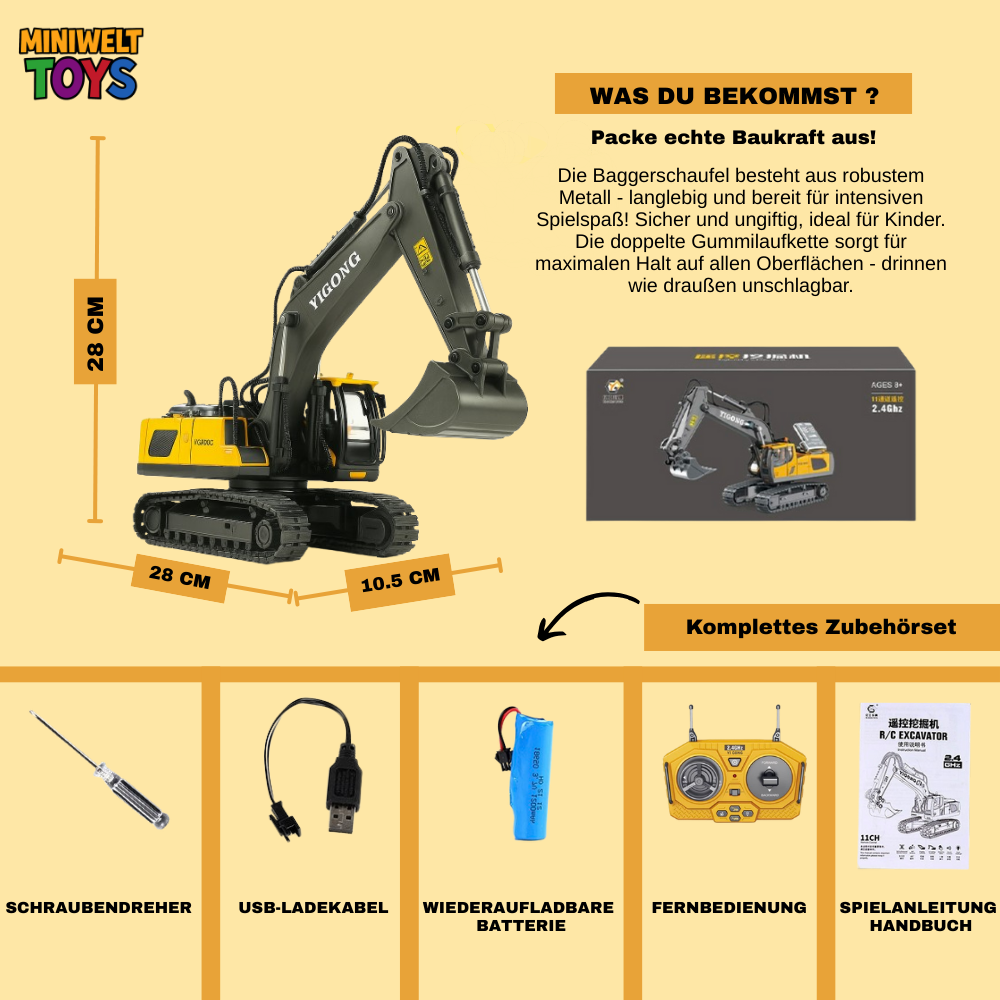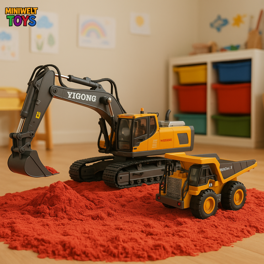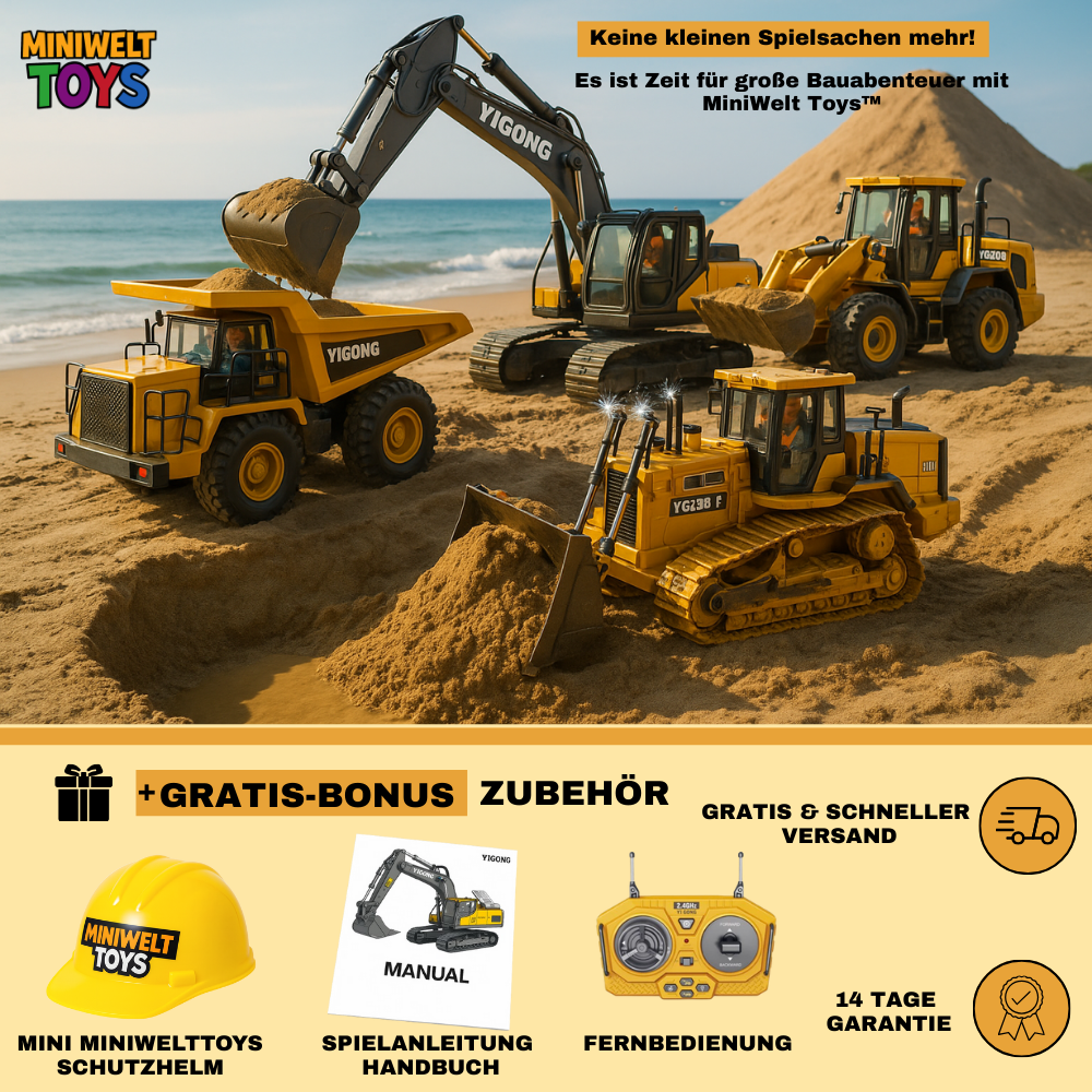 Die ferngesteuerten Trucks und Bagger von MiniWeltToys™ fördern aktives Spielen, verbessern Konzentration und Koordination und bringen Kinder raus an die frische Luft - ganz ohne Bildschirm.